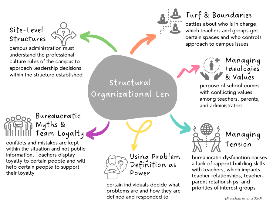 There are two approaches that define micropolitics in education, the structural organization lens and the sociocultural lens (p. 32).