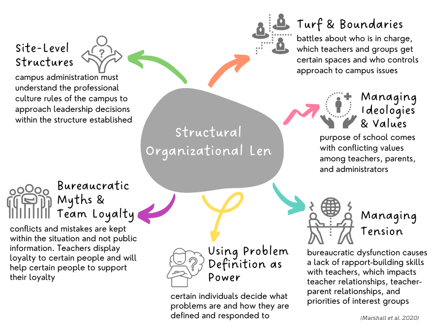 There are two approaches that define micropolitics in education, the structural organization lens and the sociocultural lens (p. 32).